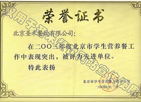 2004年北京市學生營養(yǎng)餐工作年度先進單位