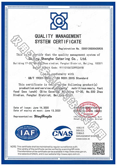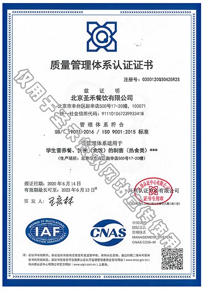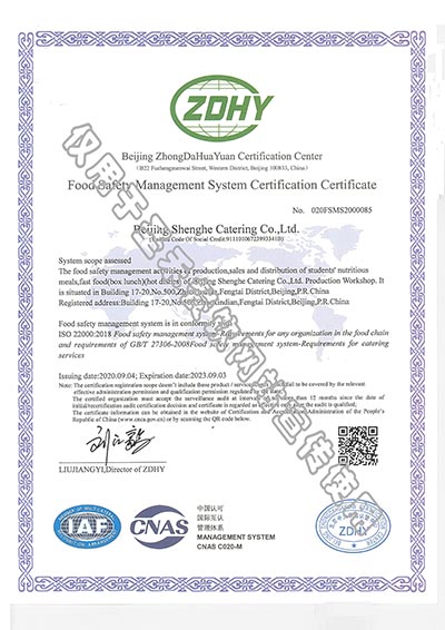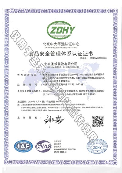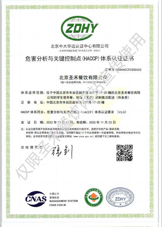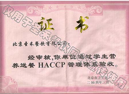 學生營養(yǎng)送餐HACCP管理體系驗收證書
