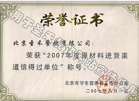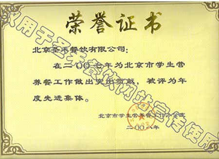 2007年北京市學生營養(yǎng)餐工作年度先進單位