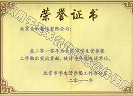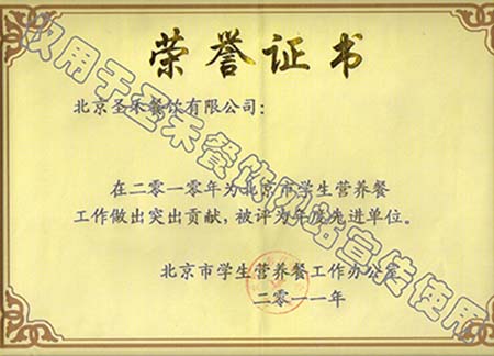 2010年北京市學生營養(yǎng)餐工作先進單位