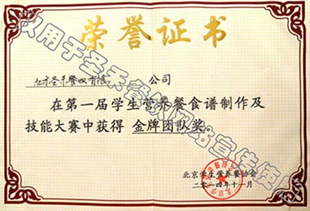 第一屆學生營養(yǎng)餐食譜制作及技能大賽金牌團隊獎