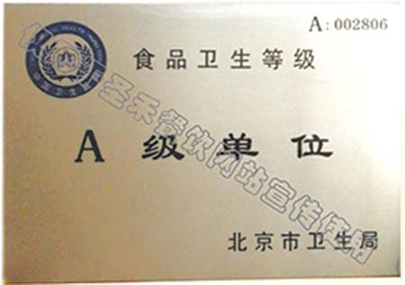 北京市衛(wèi)生局評定食品衛(wèi)生等級A級單位