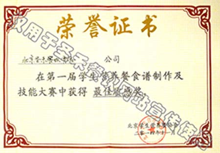 第一屆學生營養(yǎng)餐食譜制作及技能大賽最佳質感獎