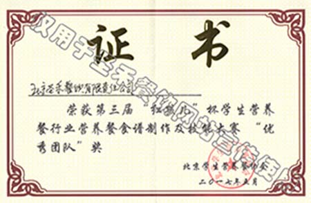 第三屆“紅孩兒”杯學生營養(yǎng)餐行業(yè)營養(yǎng)餐食譜制作及技能大賽優(yōu)秀團隊獎